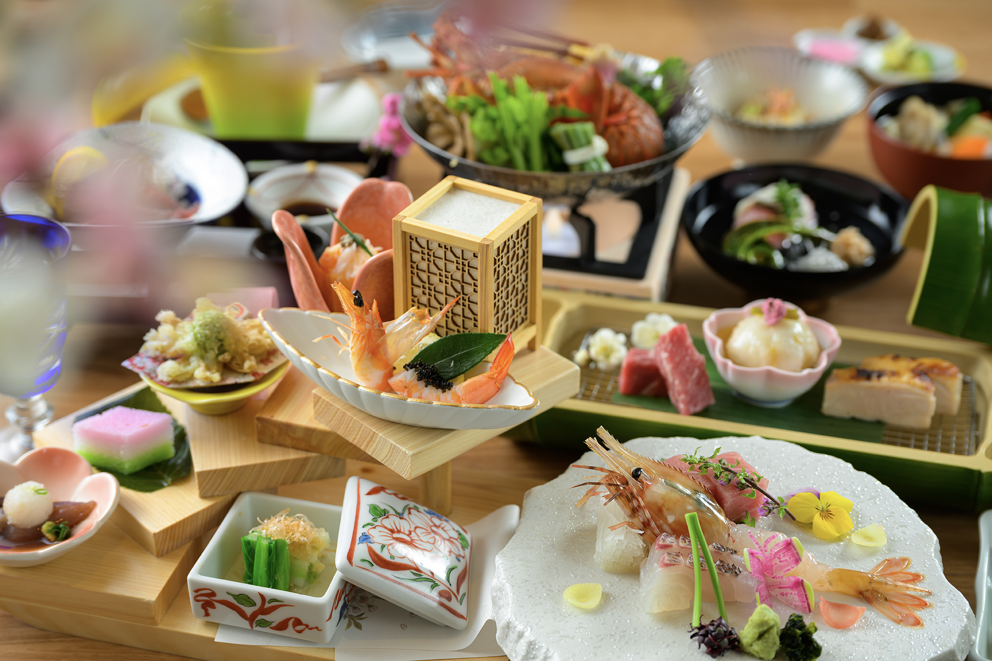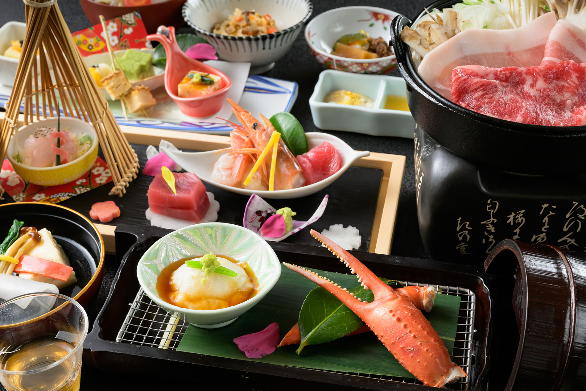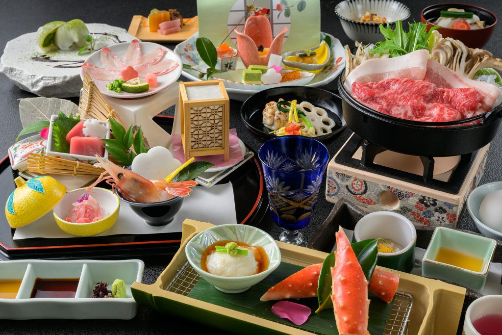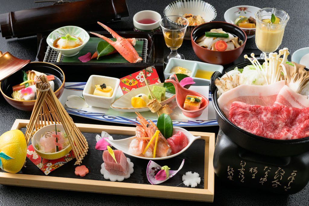 全室山側眺望、四季折々の景色に包まれる上質な和の空間「万葉館」。お食事は一品一品こだわり作り上げる創作和会席を個室のお食事処でごゆっくりとお楽しみ頂けます。