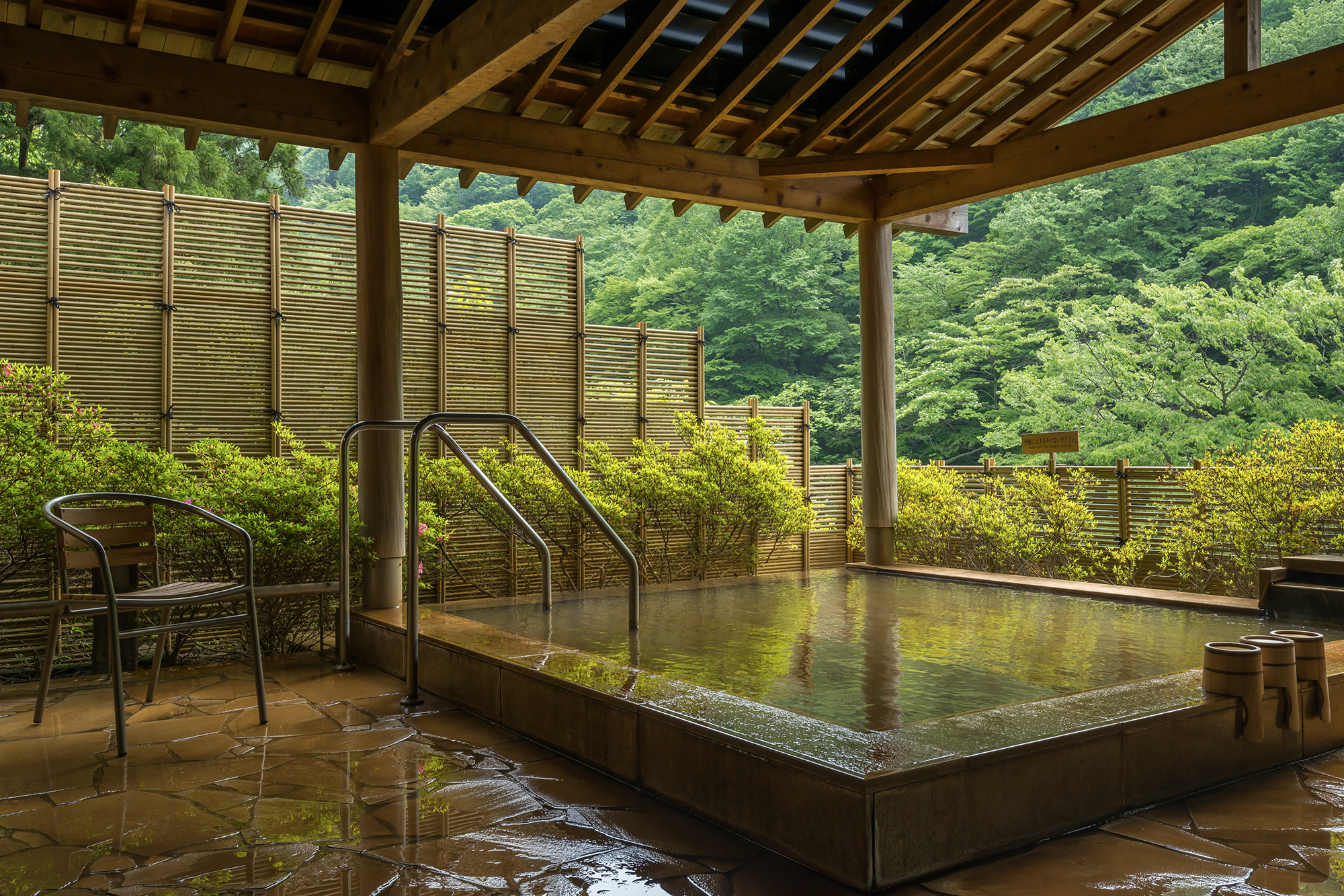 近年湧き出した、無色透明でやわらかな湯ざわりの白銀の湯。