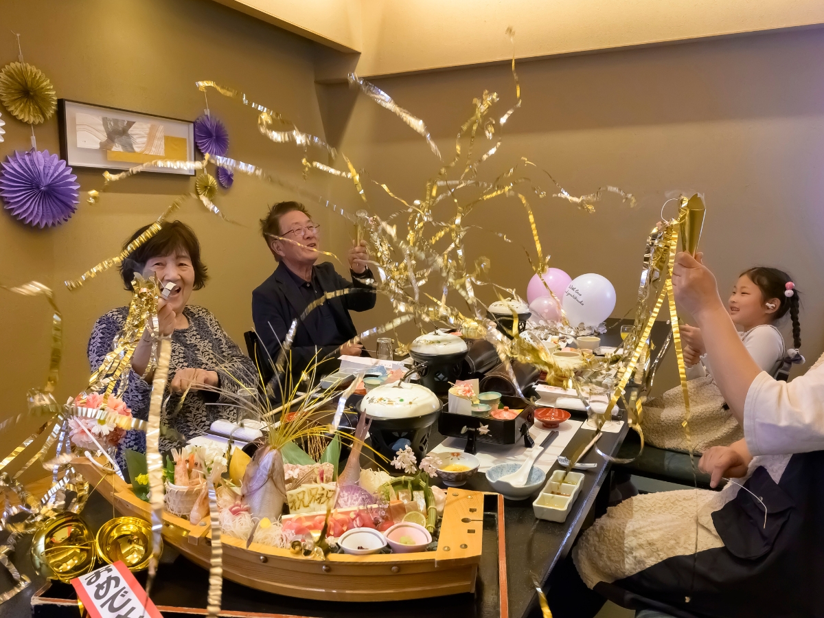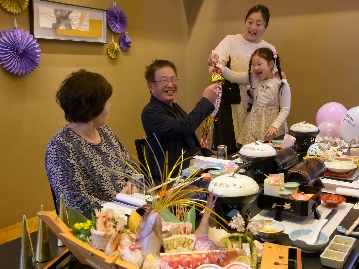 ご夕食は個室確約。プライベートな空間で、お祝いのお食事をお楽しみください。