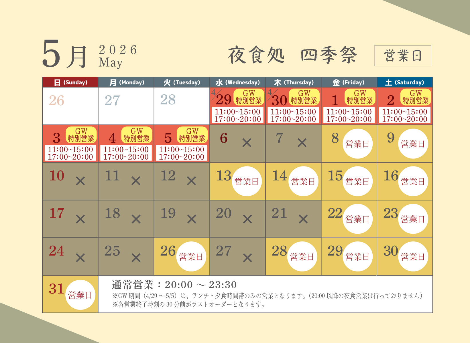 ※不定休